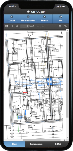 | ✓ | Benutzer haben jederzeit alle Dokumente und Pläne in der aktuellsten Version digital in Ihrer Tasche. |