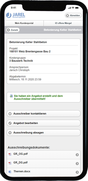 ✓ | JAREL ermöglicht ganzheitliches Auftragsmanagement für Bauträger & Generalunternehmer. |