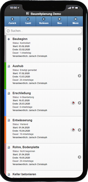 | ✓ | Das digitale und mobile Bautagebuch erlaubt schnelles Erfassen von Bautagesberichten direkt auf der Baustelle und schafft eine Verbindung zwischen Bauzeitenplänen und Projektzeiterfassung. |